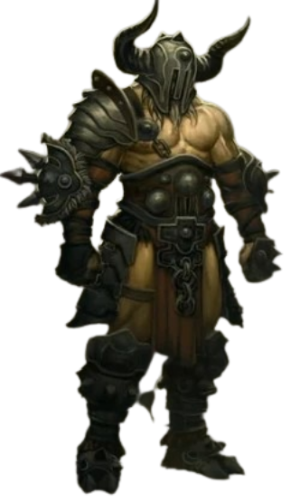 His visage marked equally by tribal tattoos and the scars of battle, the imposing Marauder is a survivor of many bloody battles. The clanging, scraping and screaming of war is music to his ears, and he delights in crushing the skulls of his foes underfoot. He is a monster of a man, towering above his cohorts and quick to show his strength and ferocity. A master armsman, the Marauder is versed in many weapons, but he generally prefers the heft of a heavy two-handed axe or mace. He plunges into the Poelsemix arena with a cry of delight, and woe be to anyone foolish enough to get in his way.